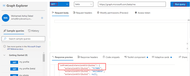 Get users custom extension attribute from users Active directory profile: