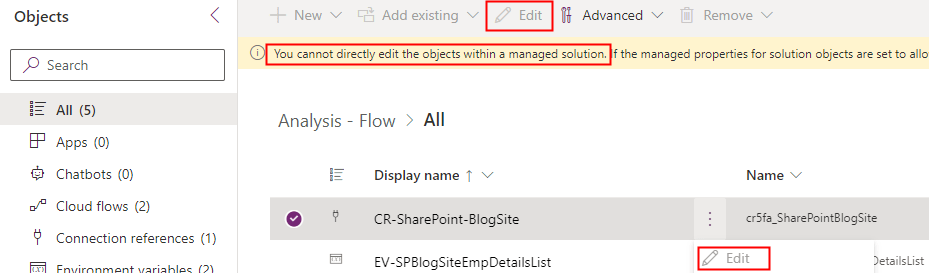 A connection reference is a component in a solution that holds information about a connector. It can be used by both a Canvas app and Power Automate flows. When importing a managed solution to an environment, the user is asked to either select an existing connection or create a new one. However, once a managed solution is imported, it cannot be edited as shown below