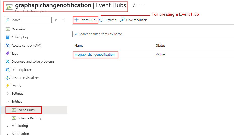 Create the Azure Event hub according to the instructions given in this MS Learn documentation.