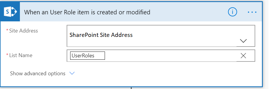 I will be using a flow to grant access to PowerApp & SharePoint site. Let’s build the automated flow with trigger “When an item is created or modified” connected to the list User Roles