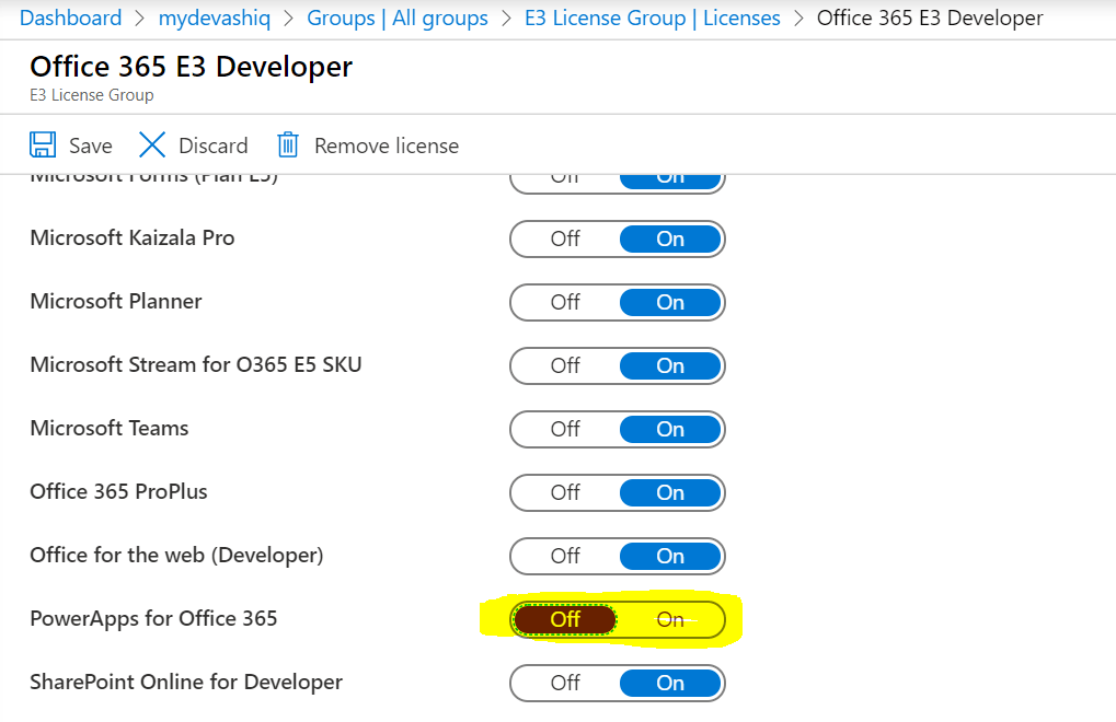 All types of license (E5, E3, PowerApps, Power etc) has a Service Plan id also called as SKU id. Find the list of SKU id’s on this link if your tenant has procured the license for the service